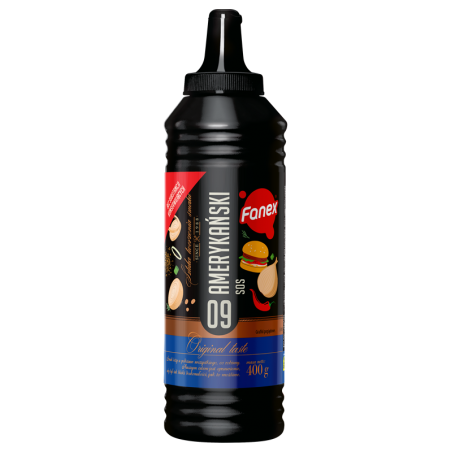Sos amerykański to klasyczny dodatek, który doskonale podkreśla smak dań typu fast food. Ten sos amerykański w wygodnej butelce 400 g to propozycja dla wszystkich, którzy szukają intensywnego, wyrazistego smaku do burgerów, hot-dogów i frytek.